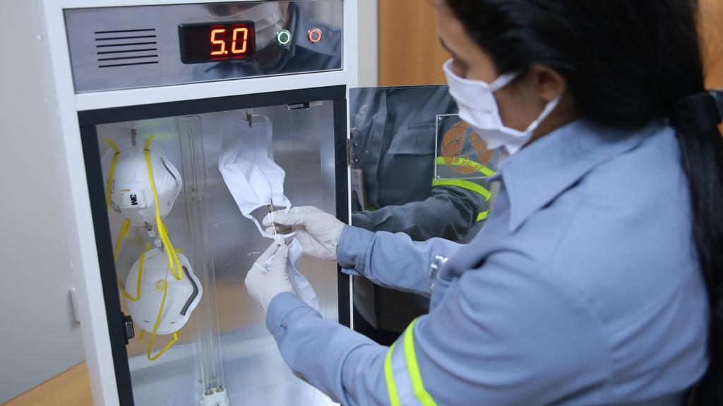 O UV Mask é um aparelho que descontamina máscaras caseiras e Equipamentos de Proteção Individual (EPI). Após serem colocadas dentro do dispositivo e expostas aos raios UV, as máscaras podem ser novamente utilizadas. A cada ciclo de desinfecção de cinco minutos, quatro máscaras estão prontas para serem reutilizadas de forma segura. Com a demanda crescente por equipamentos de proteção individual, como as máscaras N95 de uso profissional, a reutilização é uma estratégia que traz vantagens de segurança e de operação para a empresa. No total, 34 unidades da UV Mask foram compradas e distribuídas entre as unidades.