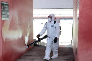 As ações de desinfecção são executadas em parceria com a Secretaria de Estado de Desenvolvimento Agropecuário (Sedap) e com a Equipe de Resposta Nuclear Biológica Química e Radiológica do Comando do 4° Distrito Naval. “Estamos usando a solução química, que é essencial no combate ao novo coronavírus e outros patógenos em toda a área, e em especial naquelas com maior circulação de pessoas como vestiários e cabines”, disse o coordenador da ação pela Sedap, Victor Lax.