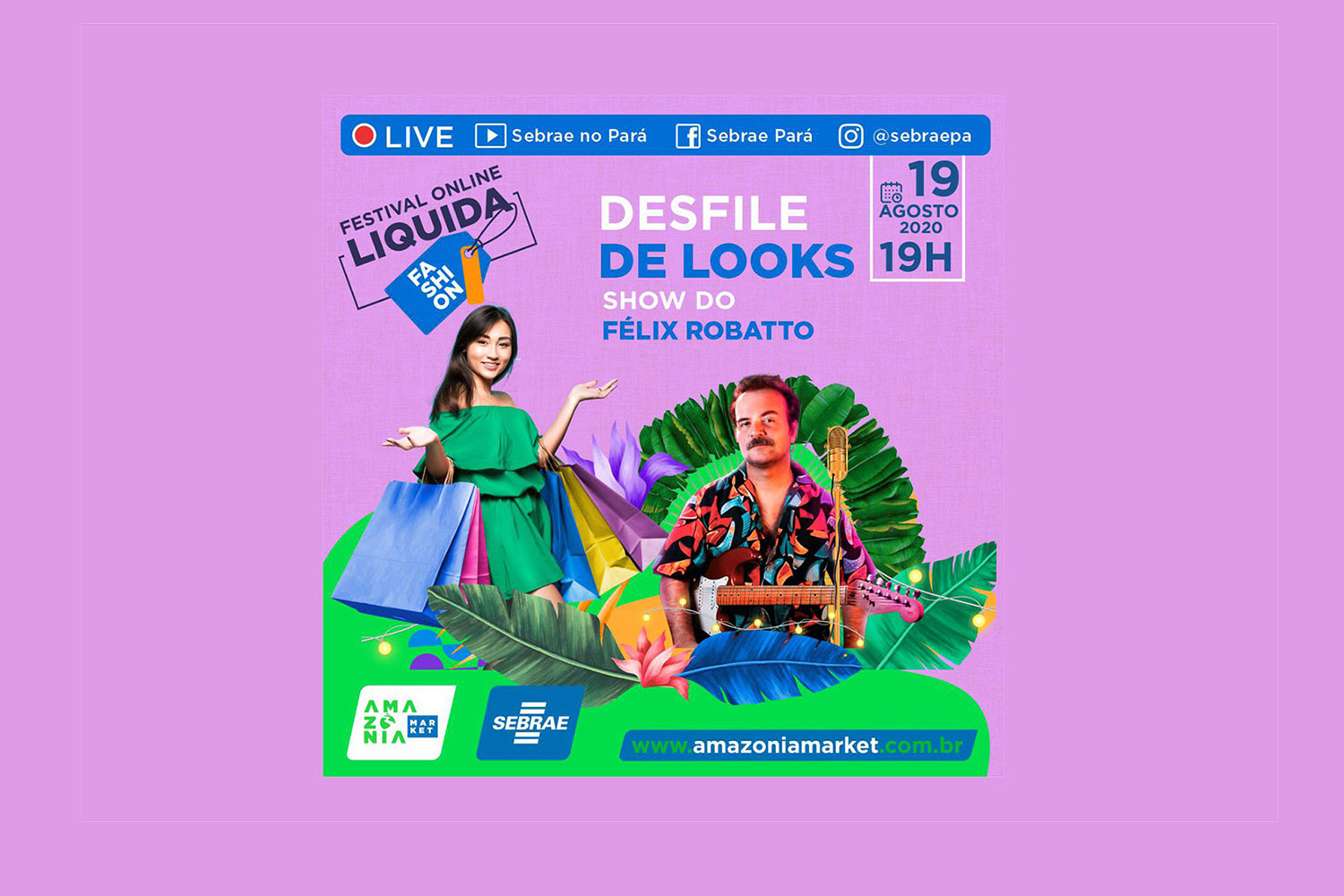 Um pouco do que o Festival Liquida Fashion tem de melhor. Assim será o desfile de moda online que o Sebrae no Pará realiza nesta quarta-feira, 19, às 19h, pelo Instagram (@sebraepa) facebook (@SebraePA) e YouTube (Sebrae no Pará) da instituição.