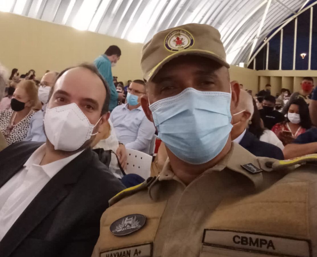 Secretário da Sedeme José Fernando Gomes Júnior e esposa Poliana Bentes Almeida Gomes diretora executiva do SimineralGiusepp Mendes presidente do IGEPREV, presente na Inauguração, ao lado do Coronel Hayman Gomes de Souza, comandante do Corpo de Bombeiros do Pará.