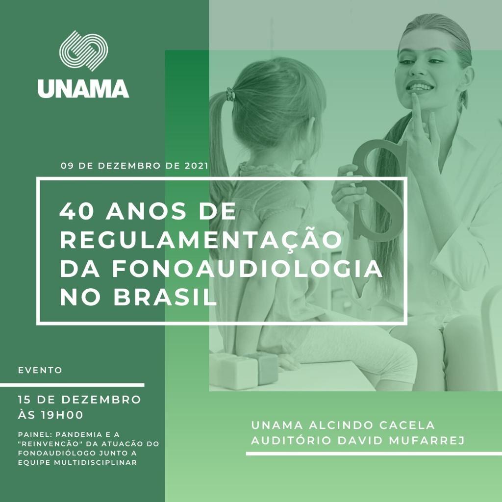 A UNAMA – Universidade da Amazônia organizou uma programação especial para comemorar os 40 anos da Fonoaudiologia no Brasil. O encontro vai acontecer no auditório David Mufarrej, campus Alcindo Cacela, no dia 15 de dezembro, a partir das 19h. O evento, com palestras, homenagens e apresentações de artigos científicos, terá como tema “Pandemia e a ‘reinvenção’ da atuação do Fonoaudiólogo junto a equipe multidisciplinar”.