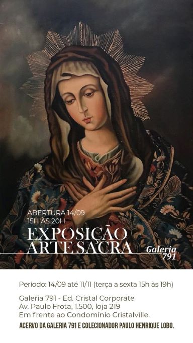 Paulo Henrique Lobo confirma para amanhã , 14 de setembro, a Exposição ARTESACRA que se estenderá até 11 de novembro na Galeria 791 do Ed. Cristal Corporate.