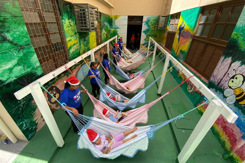 O Redário foi integrado ao ambiente da creche e já conta com a aprovação dos Deitar em rede, um hábito amazônico tão natural quanto contemplar os rios da região, é transformado em recurso pedagógico para a educação infantil pelo Governo do Pará. Nesta sexta-feira (16), a Secretaria de Estado de Educação (Seduc) implantou o Projeto “Redário da Leitura”, no Centro de Referência de Educação Infantil (CREI) Prof. Orlando Bitar, em Belém. Ainda em caráter experimental, o projeto foi bem recebido pelos alunos da unidade, que integra o Programa do Estado “Creches Por Todo o Pará”.