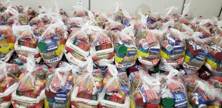 Cestas básicas entregues para famílias assistidas em programas sociais do governo em parceria com a MRN