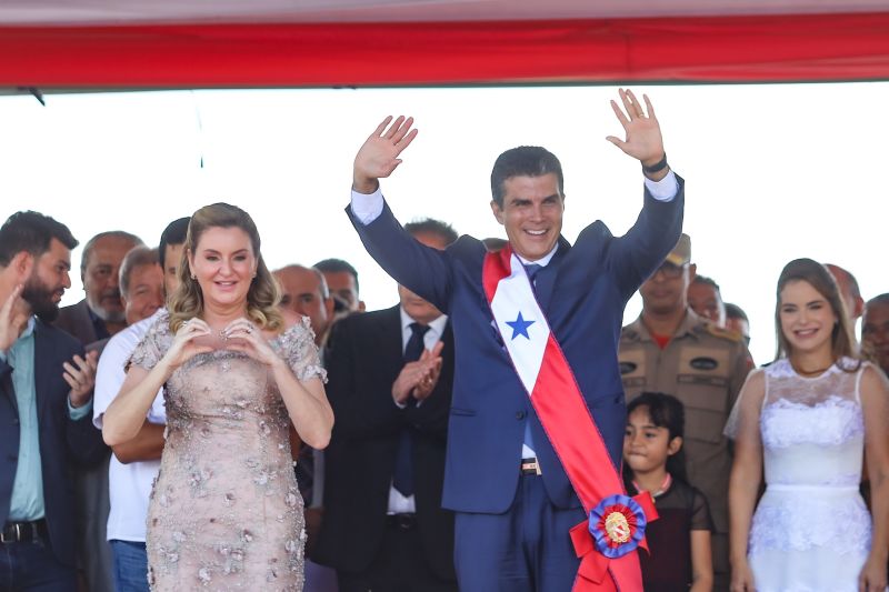 “É um momento histórico para o Marajó. Poder estar aqui com muita honra, muito orgulho e muita gratidão. Tomar posse nesta região, deixando muito claro que o nosso governo buscará, a todo custo, diminuir as desigualdades, garantir que o Marajó tenha ações de políticas públicas, investimentos que melhorem a vida do povo marajoara. Hoje, é um dia de agradecer a Deus e reconhecer aquilo que fizemos. Mas temos que reconhecer que temos um desafio enorme, e que o Marajó certamente precisa e estará entre as prioridades da agenda do governo do Estado, para que com isso possamos dar aos nossos irmãos marajoaras melhorias de vida, presença de Estado, presença de serviços de qualidade, para que as pessoas possam ter um futuro melhor”, destacou o governador, que recebeu a faixa das mãos do mestre de carimbó Artêmio Pereira.