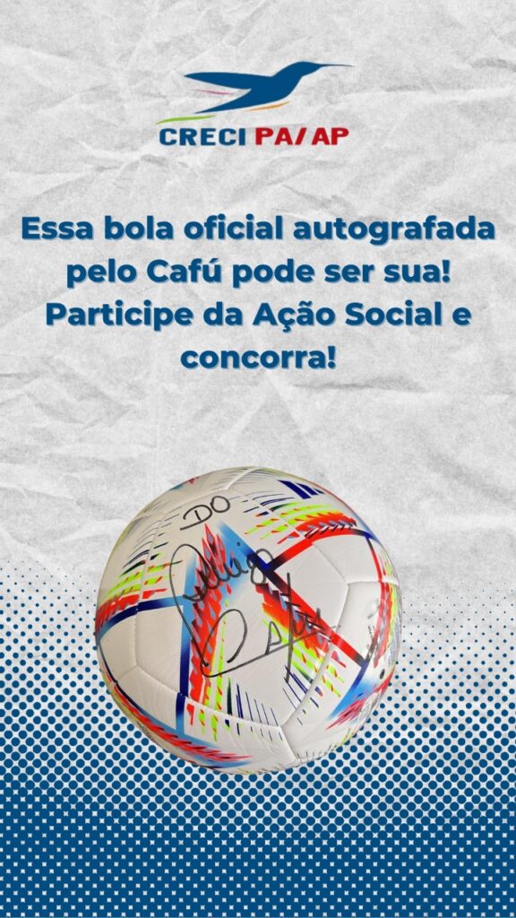 O CRECI PA/AP lançou ação social que vai sortear uma bola oficial da Copa 2022, autografada pelo jogador Cafu, o capitão do pentacampeonato mundial. O objeto foi uma doação do ex-lateral direito da seleção aos Conselhos Imobiliários do país. Os recursos arrecadados vão ser destinados ao projeto social Cafuzinhos do Sertão.