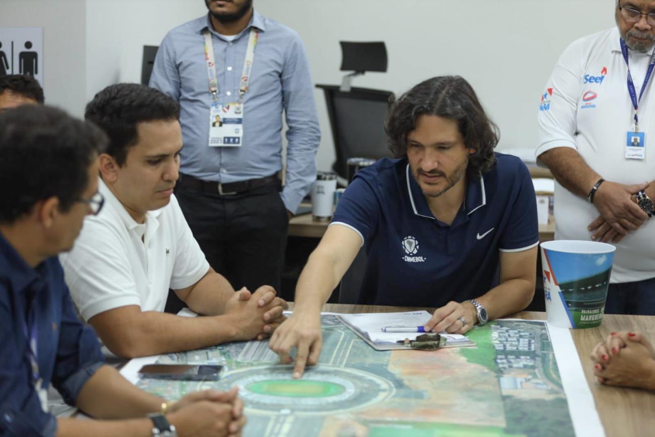 Neste domingo (25), o gerente da Confederação Sul-Americana de Futebol (Conmebol), Felipe Restrepo, visitou as instalações do Estádio Olímpico do Pará Jornalista Edgar Proença. A vistoria técnica visa avaliar a estrutura da praça esportiva para receber os jogos da seleção brasileira pelas eliminatórias da Copa do Mundo de 2026 e jogos das competições da Conmebol.
