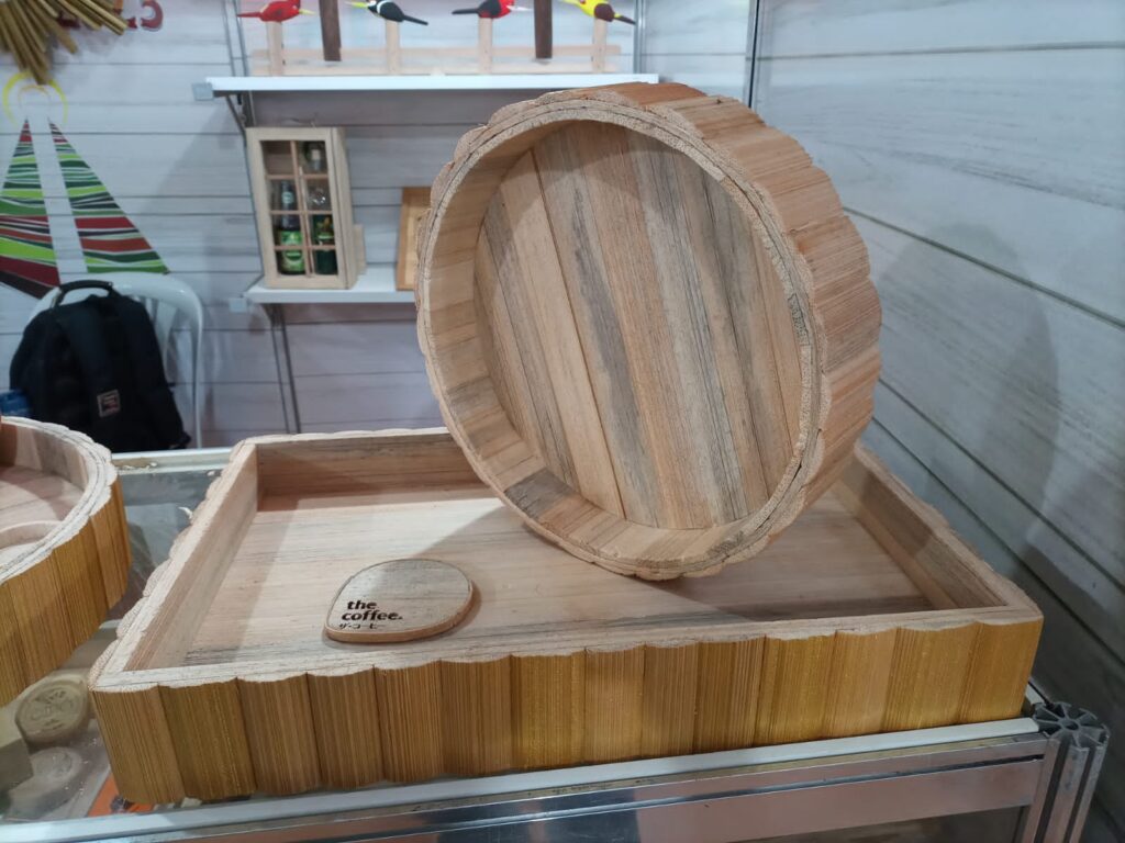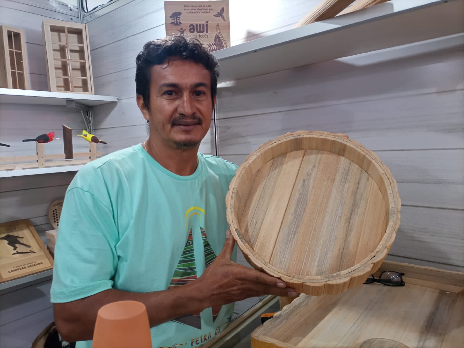 E acrescenta: ” estamos trabalhando, lançando bandejas que são peças utilitárias. Estamos trabalhando na área de movelaria, fazendo mesa de centros, mesas normais e bancos pequenos, redondos. Tudo de miriti, cem por cento biodegradável, cem por cento ecologicamente correto”.