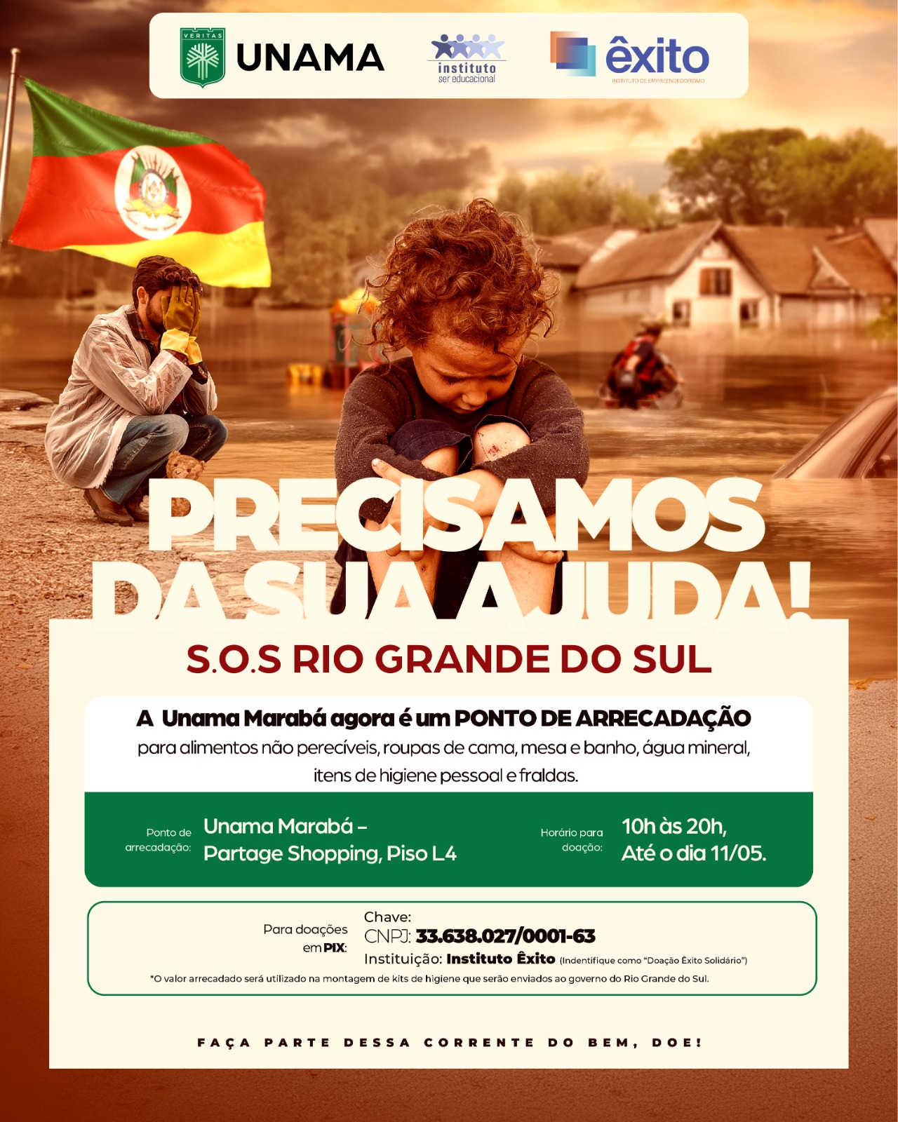 A Universidade da Amazônia, em Marabá, em parceria com o Partage Shopping e TV Correio, comprometida com a arrecadação de doações para as vítimas da tragédia no Rio Grande do Sul.