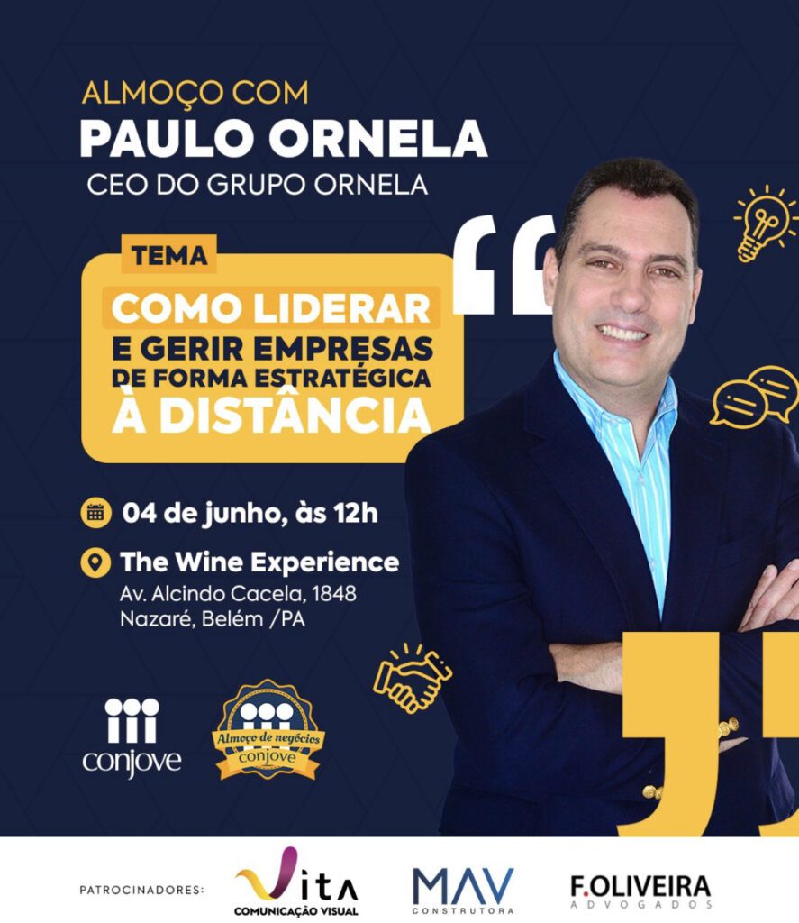 Ornela, que está a frente de operações como a Morana, a Scala, a Lipstick, além de ser diretor de franquias Lobo, do Paysandu – assim como do América de Natal e do Náutico – vai falar aos jovens empresários sobre como gerir negócios à distância, já que o convidado opera suas empresas em Belém, mesmo residindo nos EUA.