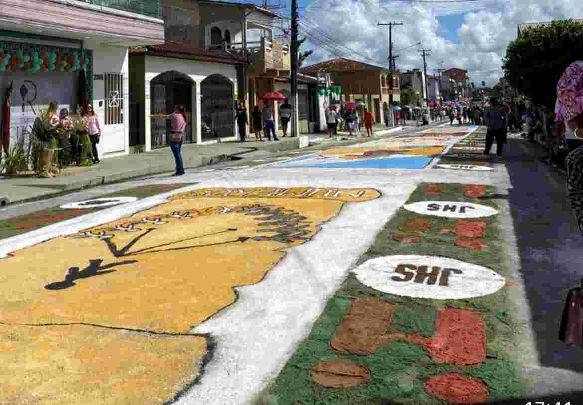 Todos se unem para criar o extenso tapete colorido pelas ruas da cidade, que causam admiração constante em torno dos desenhos, onde cada morador reflete sua devoção sobre os simbolismos criados com serragens. É um momento de evangelização e de nutrir uma tradição que passa de geração em geração. A cada ano, a beleza e o encanto dessa celebração só aumentam”, ressaltou o vice-prefeito.