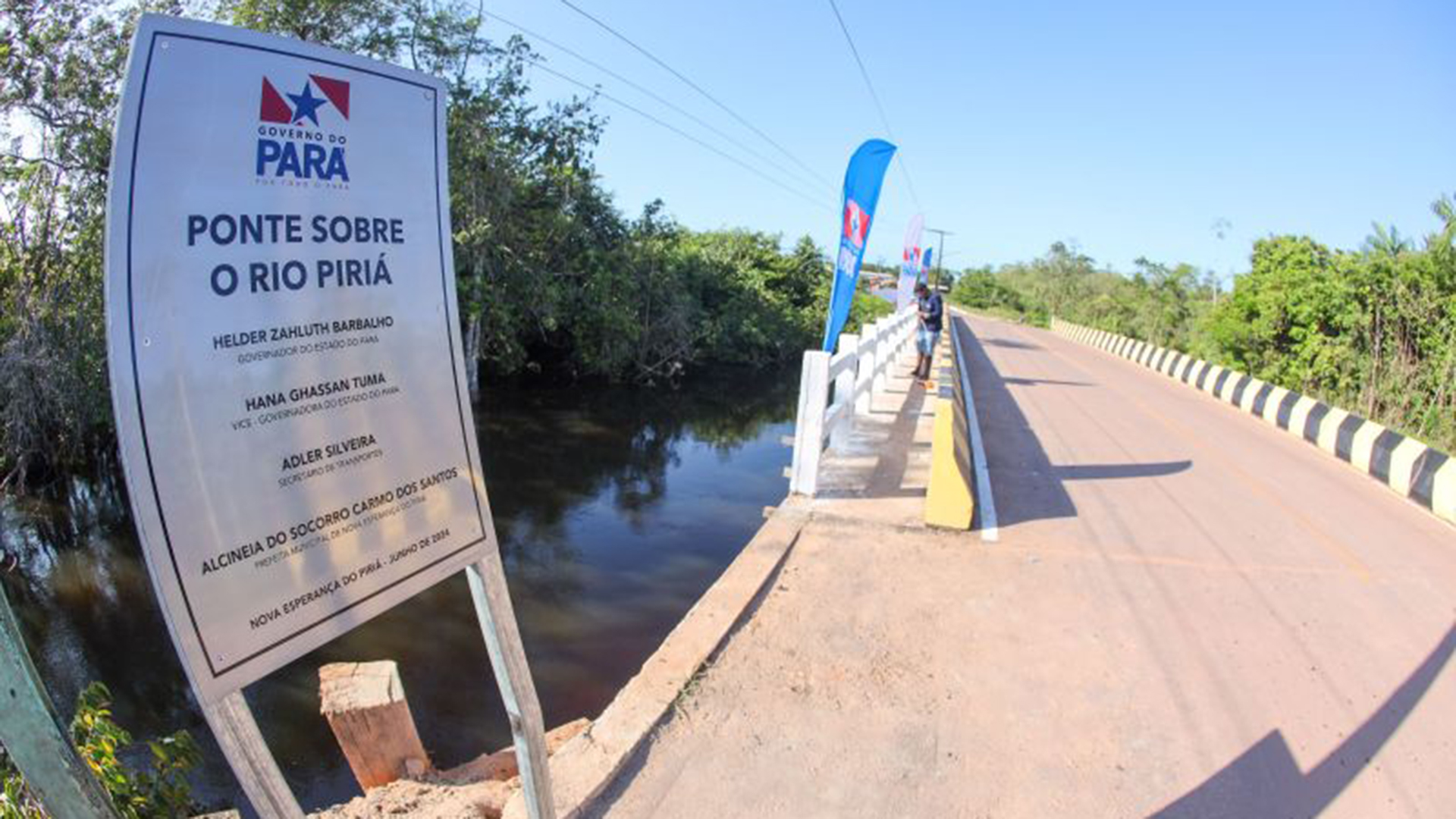 O governo do Pará entregou uma ponte de concreto no município de Nova Esperança do Piriá nesta quinta-feira (27). O equipamento melhora a mobilidade urbana e facilita a vida dos moradores da região, que até então contavam apenas com uma antiga estrutura de madeira para atravessar o rio Piriá, que corta o município.