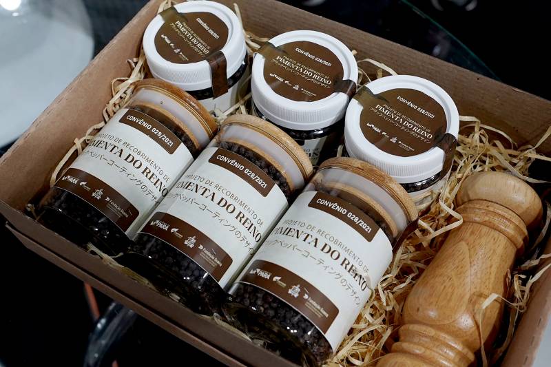 Pimenta-do-reino – A pimenta-do-reino é um dos produtos mais importantes da agricultura paraense e, por isso, objeto de pesquisa. Nájma Kahwage é graduanda em engenharia química e integrante de um projeto que desenvolve estudos para o beneficiamento da espécie. O projeto é apoiado pela Fapespa e teve destaque no stand neste primeiro dia de evento. Dentre os produtos apresentados utilizando a pimenta-do-reino, teve a pimenta in natura recoberta com biofilme feito da mandioca, óleo essencial, velas aromáticas, sabão e a piperina, composto valioso responsável pelo ardor da pimenta.