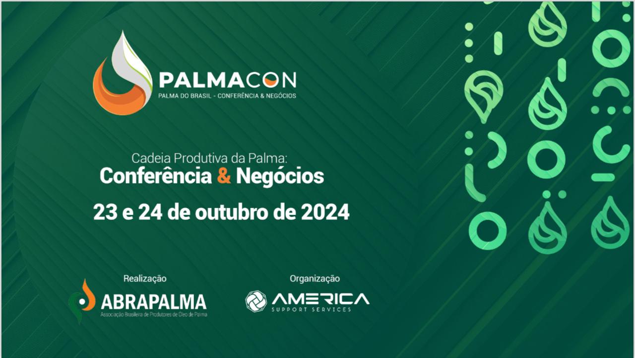 O evento é uma realização da ABRAPALMA (Associação Brasileira dos Produtores de Óleo de Palma) e será realizado nos dias 23 e 24 de outubro de 2024, em Belém/PA.