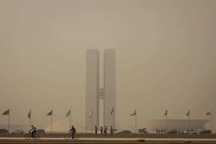 De acordo com o Corpo de Bombeiros Militares do Distrito Federal (CBMDF), que analisou imagens de satélite, a densa fumaça, que encobriu prédios oficiais como o do Congresso Nacional, é intensificada pelas queimadas que ocorrem no estado de São Paulo, trazida por ventos favoráveis.