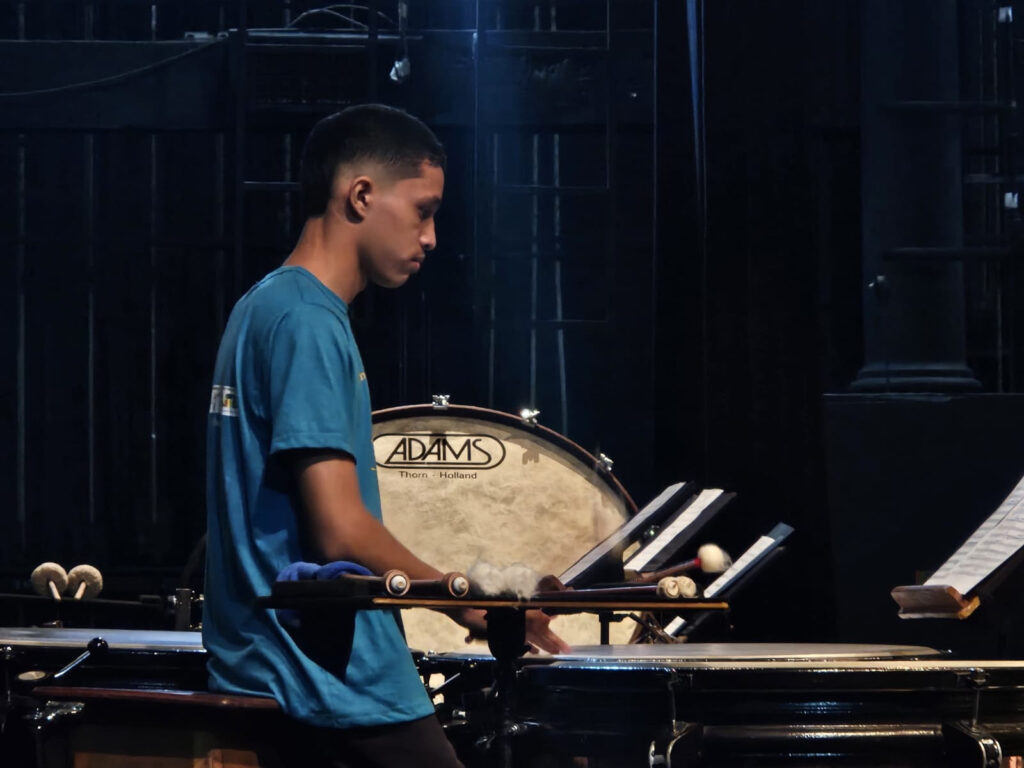 Metade dos 16 anos de Eduardo Siqueira dos Santos Remédios foram dentro do Vale Música Belém e, ainda tão jovem, ele já traz experiência de uma turnê nacional na bagagem, integrando a Orquestra Jovem Vale Música que recentemente realizou concertos comemorativos dos 20 anos do projeto Vale Música Belém em importantes salas do Rio de Janeiro, São Paulo e Minhas Gerais. Para o concerto de sábado, Eduardo tem uma missão e tanto: ele estará no comando do “coração” da orquestra, juntamente com outros músicos, nos instrumentos de percussão. “Para mim é uma honra gigante participar e tocar neste concerto. Agradeço muito pela oportunidade que me deram e pela responsabilidade que é tocar em um concerto de uma grande magnitude, num espaço aberto, para tantas pessoas”.