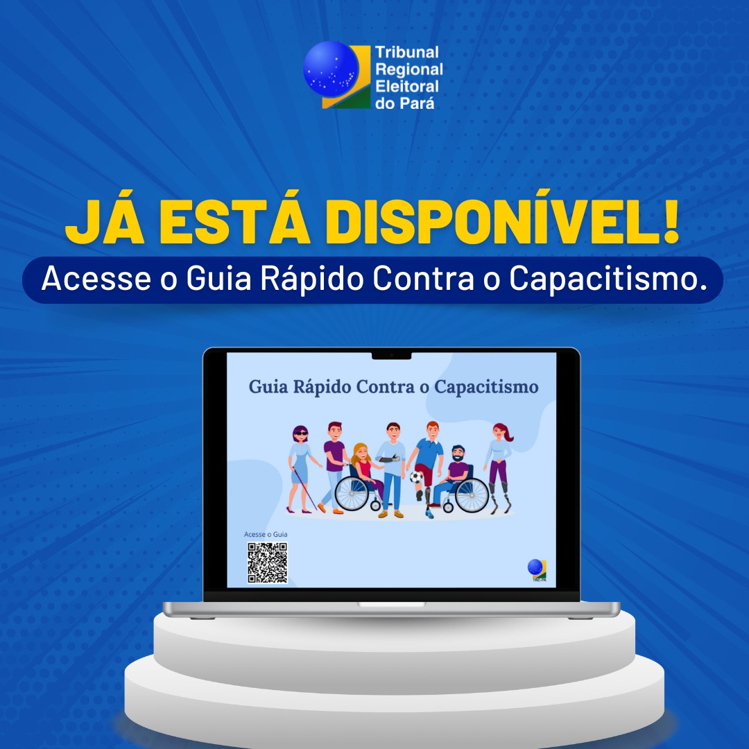 A publicação, produzida pelo TRE do Pará, orienta como identificar e combater o capacistismo especialmente no âmbito das eleições e foi destaque no site do CNJ. Veja acessando o link: https://www.cnj.jus.br/lancado-o-guia-rapido-contra-o-capacitismo-nas-eleicoes/