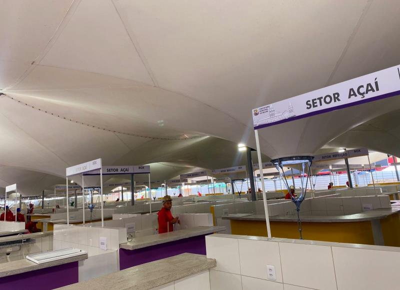 A Prefeitura de Belém concluiu a revitalização de mais 168 boxes novos e modernos na feira tradicional do Ver-o-Peso, na Campina, para atender aos setores de Refeição (com 112 boxes), Lanche e Mingau (28) e Açaí (28), que ficam ao lado do Solar da Beira. Antes do Círio de Nazaré, outros 120 novos boxes já foram entregues aos feirantes.