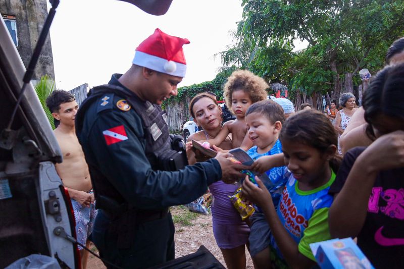 Pelo terceiro ano consecutivo, a Polícia Militar do Pará promoveu o Natal Solidário para centenas de crianças da Região Metropolitana de Belém, nesta segunda-feira (23). A ação mobilizou todo o efetivo da corporação que, de forma voluntária, presenteou com brinquedos meninos e meninas em situação de vulnerabilidade social, que moram em áreas próximas às sedes dos Comandos de Policiamento. Os brinquedos foram arrecadados ao longo das últimas semanas pelos próprios agentes e demais servidores da PM do Pará.