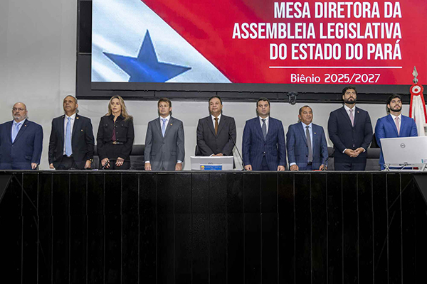 Conforme determina o Regimento Interno da Assembleia Legislativa do Pará (Alepa), a Mesa Diretora eleita para o biênio 2025-2027 foi empossada neste primeiro dia do mês de fevereiro. A cerimônia ocorreu no plenário Newton Miranda, no Palácio Cabanagem, no final da manhã deste sábado. A eleição dos responsáveis pela direção dos trabalhos legislativos e dos serviços administrativos da Alepa ocorreu no dia 17 de dezembro, e reconduziu o deputado Chicão (MDB) à presidência.