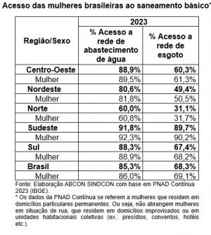 Apesar dos avanços, os desafios na universalização do saneamento ainda são grandes. Em 2023, aproximadamente 15 milhões de mulheres ainda residiam em domicílios sem acesso à água encanada, o que representa cerca de 14% da população feminina do país. A situação é mais crítica na Região Norte, onde apenas 60,8% das mulheres têm acesso à rede de abastecimento de água.