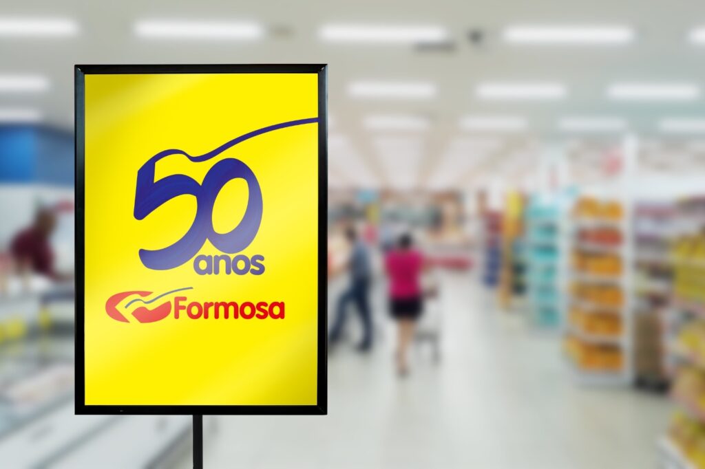 O selo comemorativo do jubileu do Formosa, que acontece em Setembro deste ano, lembra os cartazes que, há 50 anos, anunciam o principal diferencial do grupo: preço. Que sempre foi emblemático no Formosa.