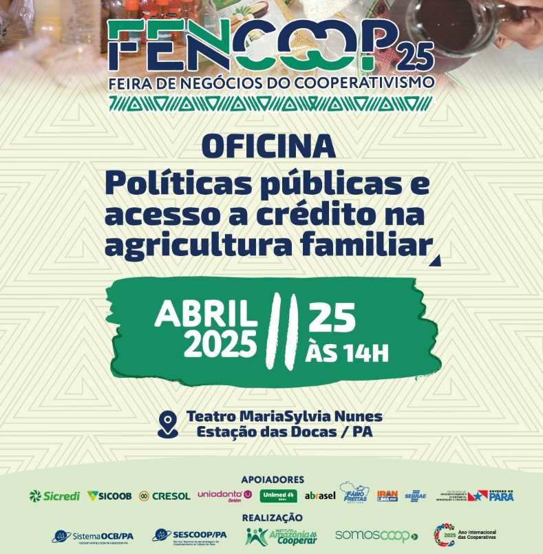 As cooperativas da agricultura familiar terão uma programação especial durante a FENCOOP 2025, com a realização da Oficina de políticas públicas e acesso ao crédito na agricultura familiar, promovida pelo Sistema OCB/PA em parceria com o Ministério do Desenvolvimento Agrário e Agricultura Familiar (MDA). O evento que será realizado no dia 25 de abril, na Estação das Docas, será um espaço de diálogo sobre políticas públicas, acesso ao crédito e fortalecimento das cooperativas que atuam diretamente no campo.