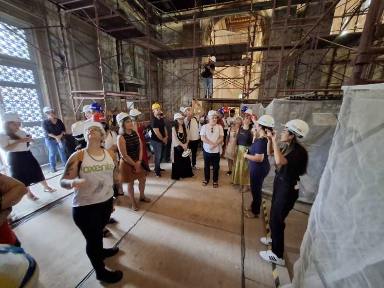A comitiva foi recebida por membros da Diretoria da Festa de Nazaré, pela representante do Instituto Cultural Vale, Nihara Pereira — entidade patrocinadora do projeto — e pela coordenadora geral das obras, Luci Azevedo. A visita começou pelo espaço Memória de Nazaré, que também passou por requalificação com apoio da Lei Rouanet, e seguiu para a Basílica, onde os visitantes acompanharam de perto o andamento do restauro.