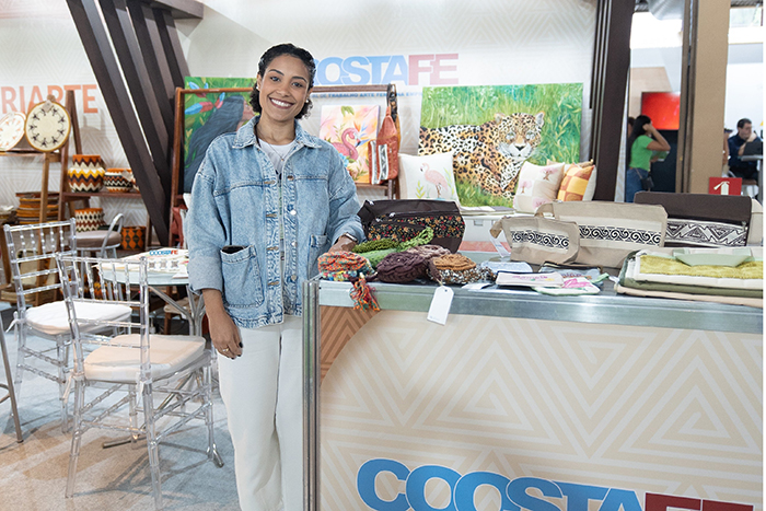 A diretora de produção, Jéssica Cruz, compartilhou como a participação contínua na FENCOOP tem impactado a cooperativa. “A COOSTAFE participa da FENCOOP há 3 anos, sendo notório a evolução da cooperativa na gestão de vendas e confecção de produtos. Ao longo desses anos e com base em práticas para aprimorar o conhecimento, as cooperadas vem se aperfeiçoando na fabricação dos materiais, tanto com novos produtos quanto em modelo e técnica. Começamos com a produção de almofadas e ecobags, e hoje, temos uma variedade de produtos, como necessaire, quadro de pintura, toalha de mesa, bolsas, vestuários, entre outros. Tudo isso é feito com as parcerias que temos que nos ajudam tanto com o aperfeiçoamento quanto com a matéria prima”, comentou Jéssica.