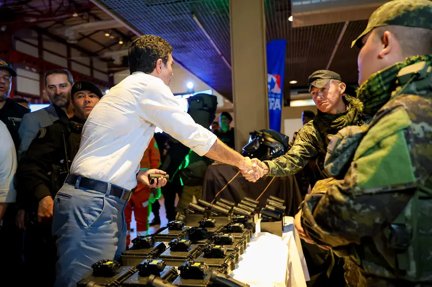 O Governo do Estado realizou nesta terça-feira (3), no Boulevard das Feiras, na Estação das Docas, em Belém, a entrega dos novos equipamentos para ampliar e fortalecer as ações de Segurança Pública no Pará. Entre os equipamentos entregues pelo governador, Helder Barbalho, estão submetralhadoras, trajes antibomba, maletas para perícias papiloscópica e local de crime, raio-x portátil, magnificadores ópticos, lasers e uma viatura policial.