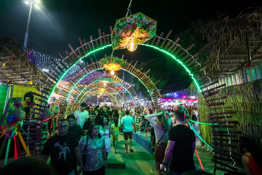 As quadrilhas juninas também são destaques na programação, com grupos folclóricos enchendo o arraial de cor, ritmo e movimento. Ritmos como carimbó, xote, boi-bumbá e outras tradições seguem vivos no evento, com forte participação da juventude local e transmissão de saberes entre gerações.