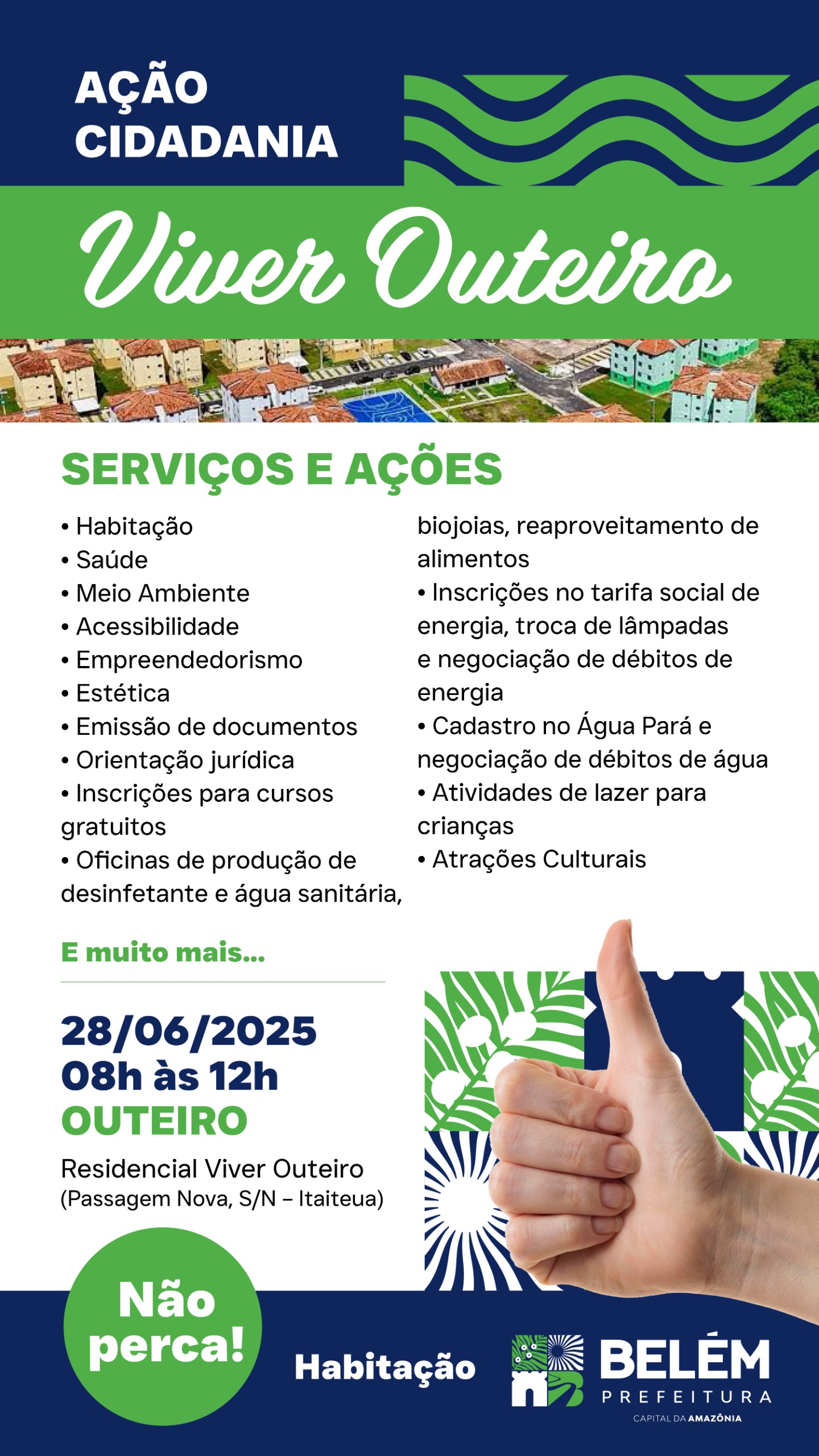 Secretaria de Habitação da Prefeitura de Belém realiza neste sábado, 28/06, a Ação Cidadania no Residencial Viver Outeiro.