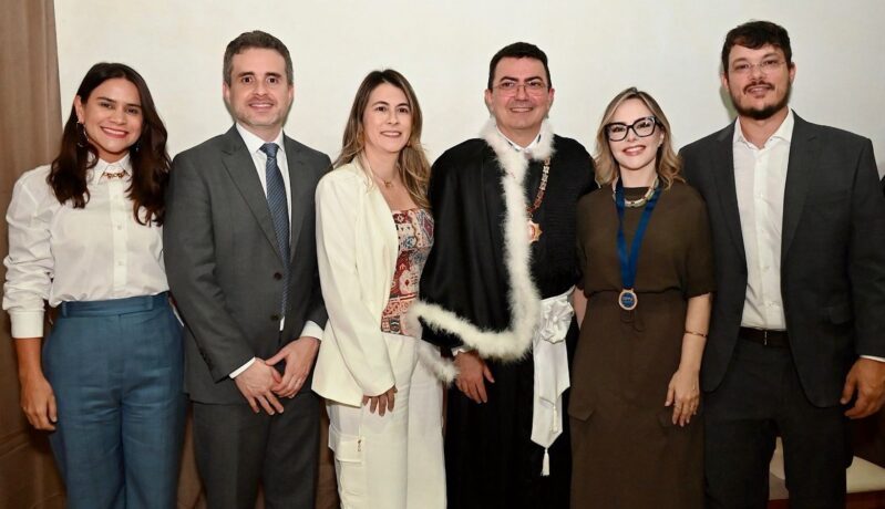 Na foto com Moema está seu irmão Vinícius Beluzzo e os cartorários e diretores da ANOREG-PA Suzanne Tourinho, Myrza Tandaya e André Formiga, com a presença do procurador-geral de justiça do MPPA, Alexandre Tourinho.