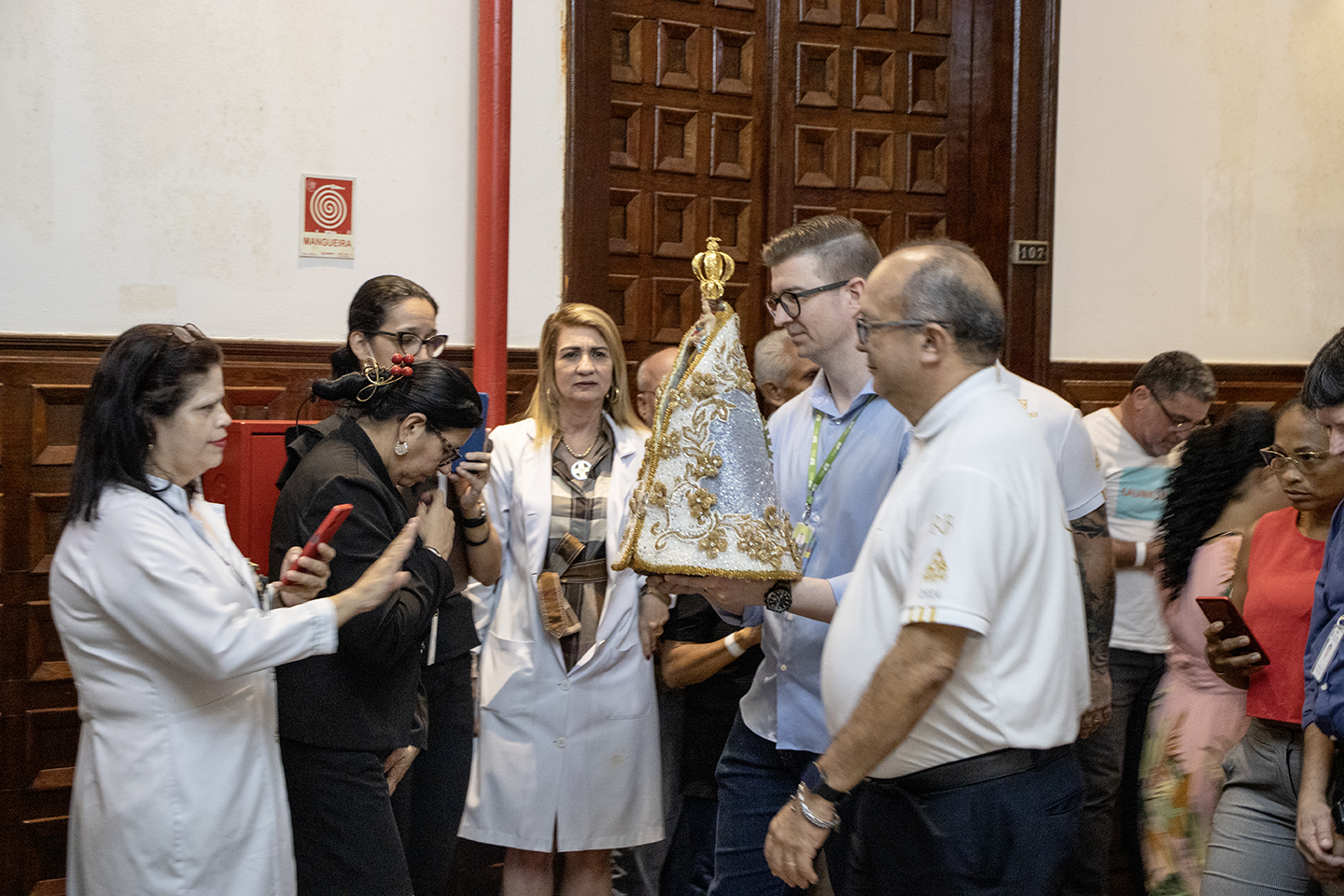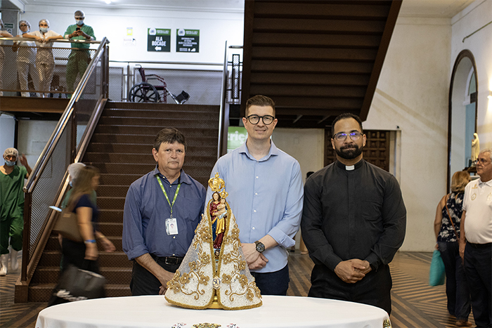 Nesta quinta-feira, 24 de julho, a Beneficente Portuguesa de Belém recebeu com emoção a visita da imagem peregrina de Nossa Senhora de Nazaré. Conduzida pelo Padre João Paulo Celestino, a imagem foi acolhida pelo diretor técnico, Dr. Heder Sousa, e pelo diretor administrativo, Fabrício Viera.