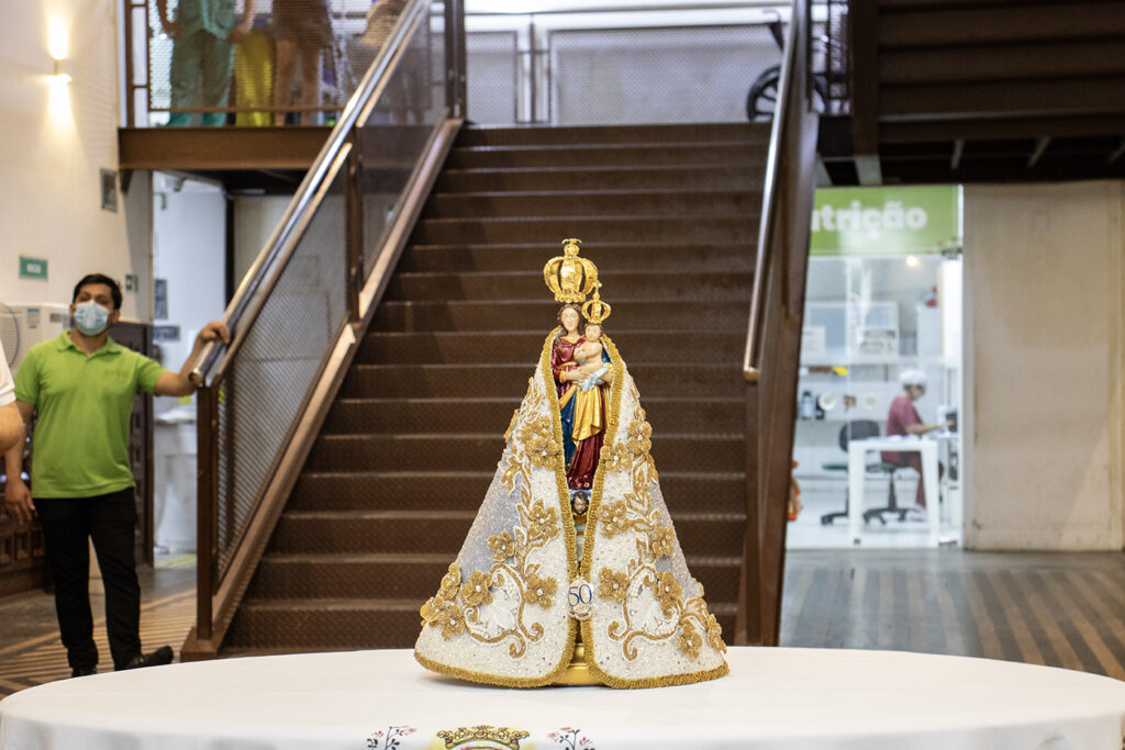 Imagem de Nossa Senhora de Nazaré leva conforto e fé à Beneficente Portuguesa