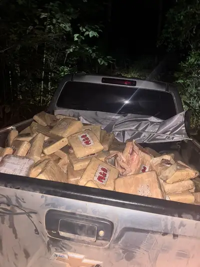 As ações seguem em andamento e até o momento, e além do entorpecente localizado, também foram presos dois homens, duas caminhonetes e duas armas apreendidas.