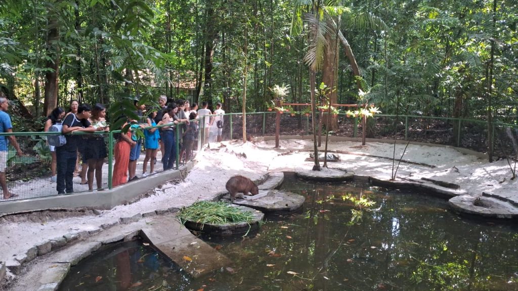A capivara chamada “Cap30”, nova moradora do Bosque, foi uma das protagonistas do fim de semana. Ela chegou por meio de uma doação voluntária feita por uma família de Cametá, cidade do nordeste paraense, que a criou por cerca de um ano, até perceber que o animal precisava de um ambiente mais adequado ao seu porte e comportamento.