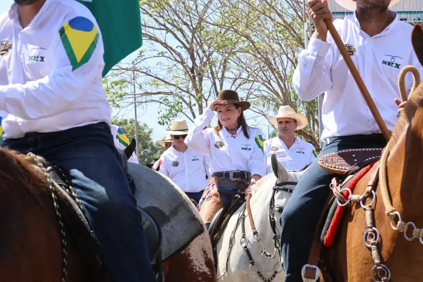 A vice-governadora, Hana Ghassan, também acompanhou o evento e ressaltou a tradição da cavalgada e sua representatividade para os produtores rurais da região.