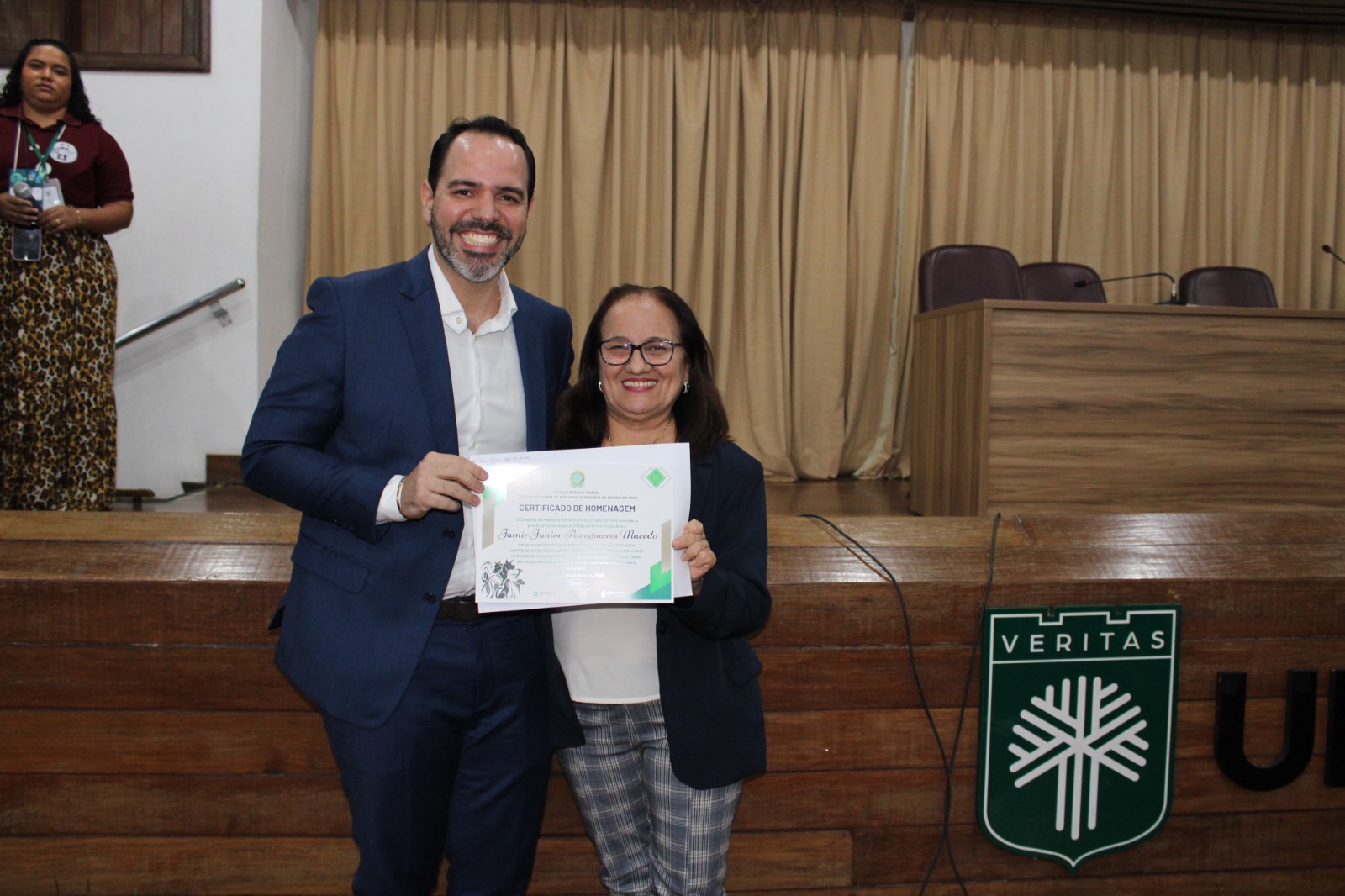 Em alusão ao Dia Nacional do Médico Veterinário, o Conselho Regional de Medicina Veterinária do Pará (CRMV/PA), realizou na semana passada, homenagem ao diretor-geral da Agência de Defesa Agropecuária do Estado do Pará (ADEPARÁ), Jamir Macedo, como médico veterinário do ano. Esse reconhecimento é pela sua contribuição à saúde pública e serviços prestados ao estado, fortalecendo o agronegócio paraense. O evento fez parte da programação de encerramento da 49ª edição da Semana do Veterinário (SEMAVET), realizado no auditório do Campus Alcindo Cacela da Universidade da Amazônia (UNAMA), em Belém.