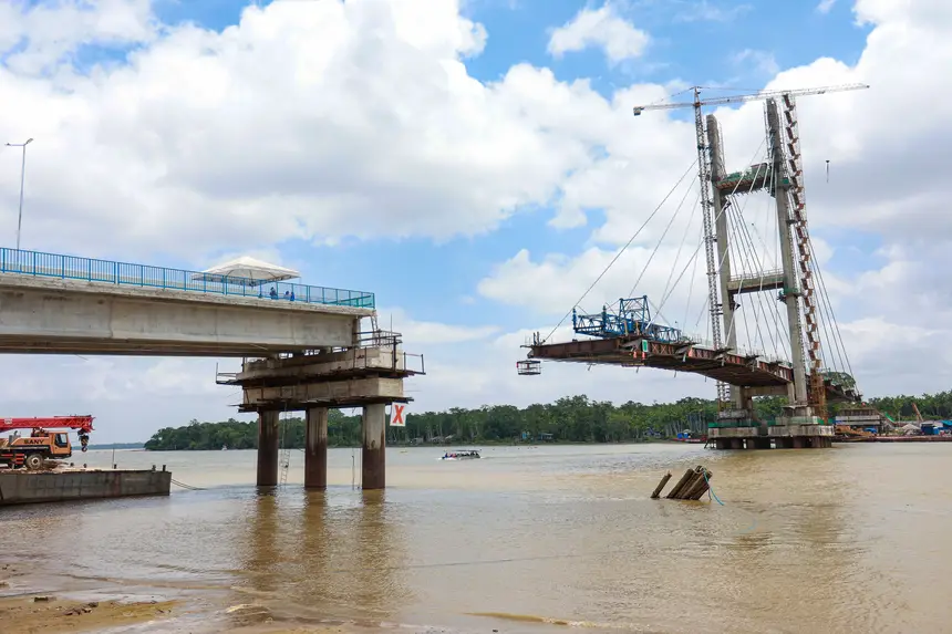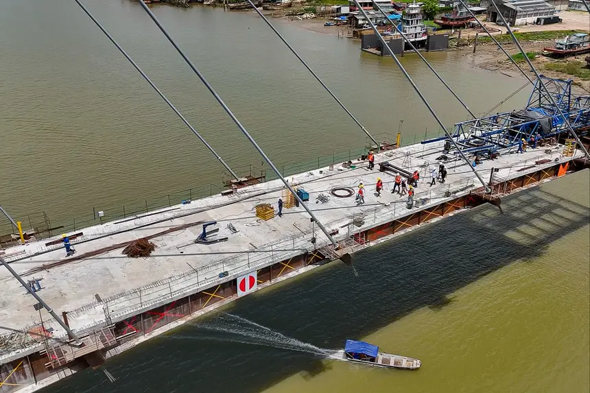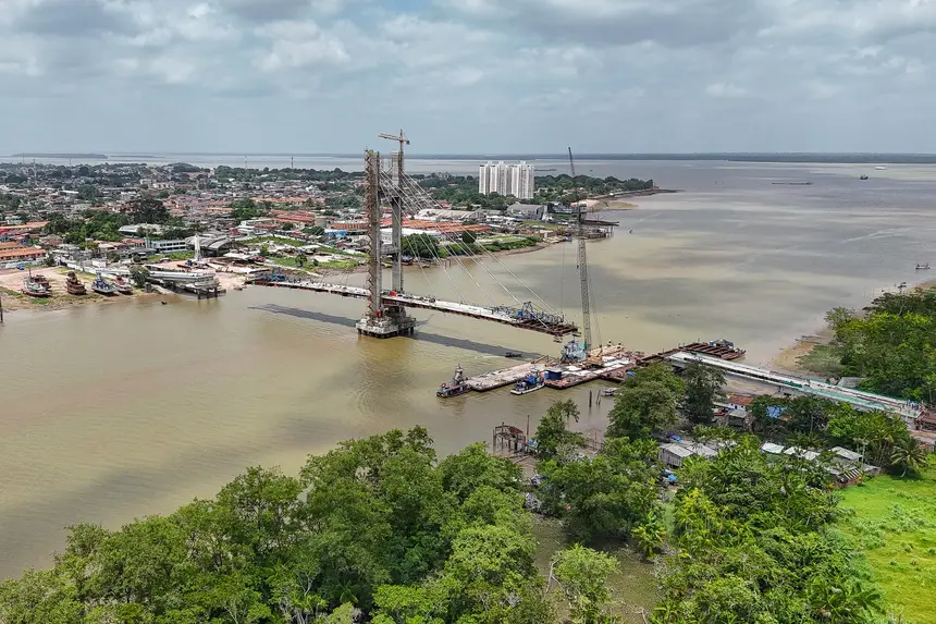 As obras da ponte estaiada que ligará os distritos de Icoaraci a Outeiro, em Belém, atingiram 92% de conclusão. Durante visita técnica, na manhã desta segunda-feira (15), o governador Helder Barbalho acompanhou o andamento dos trabalhos e destacou a importância da estrutura para a mobilidade urbana e a qualidade de vida da população, ressaltando que a ponte permitirá reorganizar completamente o deslocamento entre os distritos.