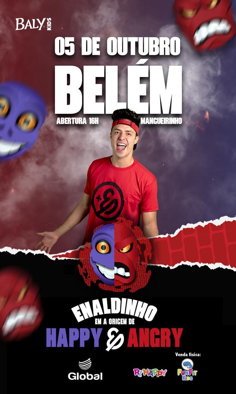 O youtuber Enaldinho está em turnê com o novo espetáculo “A Origem de Happy/Angry”. A estreia aconteceu em São Paulo, no Espaço Unimed, no dia 3 de maio de 2025. A agenda da turnê inclui data em Belém onde artista se apresenta na noite de domingo dia 05/10 às 18:00 no Mangueirinho, com entrada a partir das 16:00 .