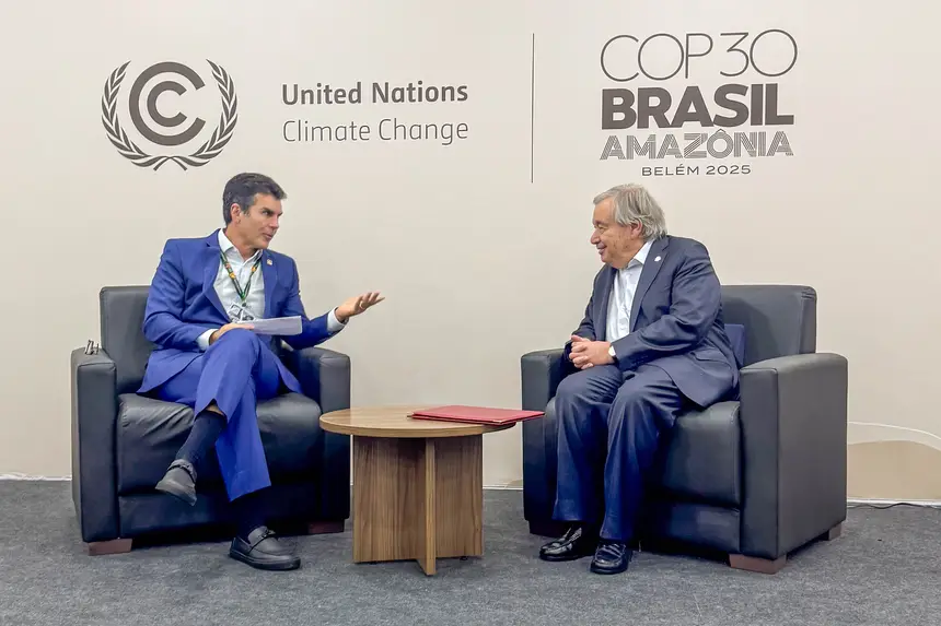 Papel da Amazônia – Um dos pontos altos da agenda foi a reunião bilateral entre o governador Helder Barbalho e o secretário-geral da ONU, António Guterres. No encontro, realizado em Belém, o governador tratou especificamente sobre o início da COP30 na capital paraense, o papel estratégico da Amazônia na estabilidade climática do planeta e as formas pelas quais o Pará pode contribuir de maneira concreta com a agenda climática mundial.