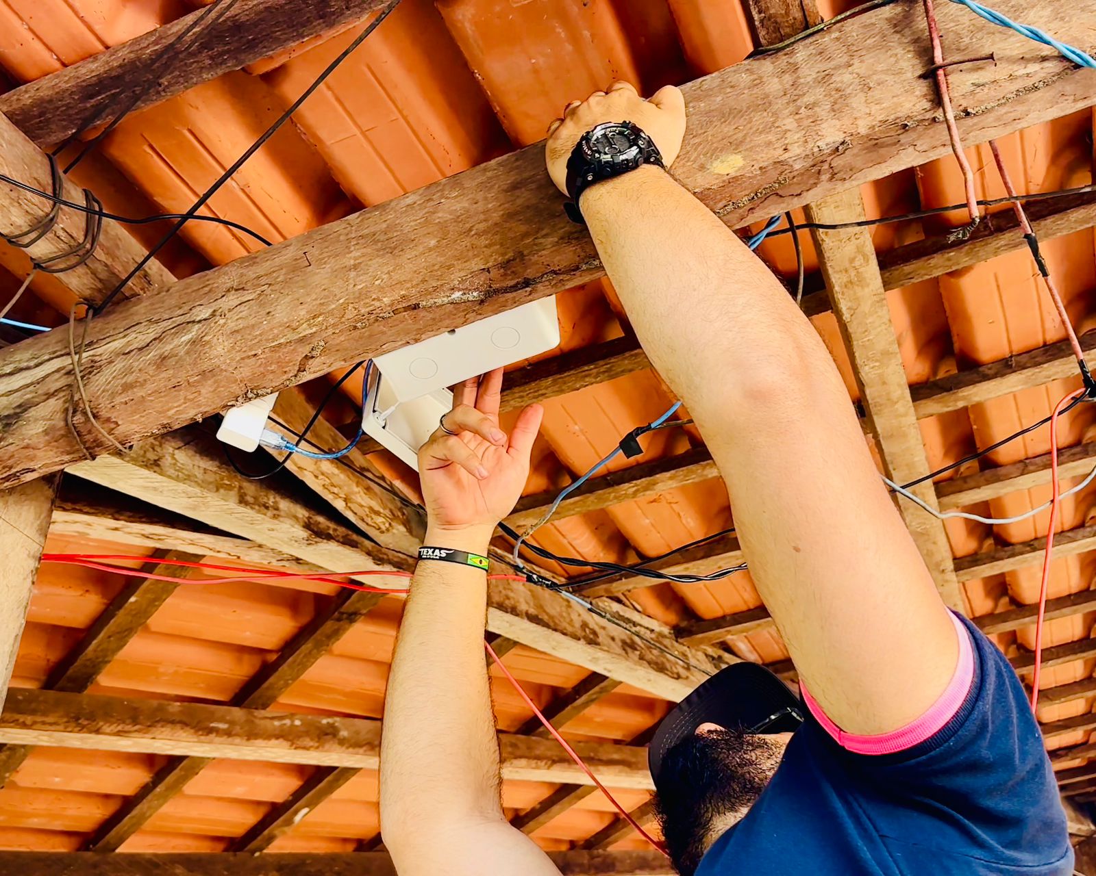 Ao lado dela, Ronald Cruz reforça o valor da experiência em campo: “É de grande significado! Tivemos uma vivência totalmente diferente, um olhar prático de como funciona o projeto que montamos na sala de aula. É uma experiência única que aprimora tudo o que aprendemos, colocando o conhecimento tecnológico em prática na comunidade.”