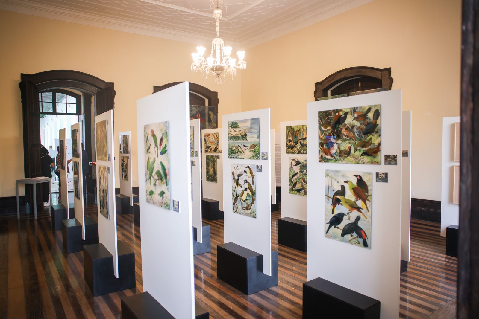 Imersiva e educativa, com tecnologia de realidade aumentada, a exposição reúne ilustrações de 337 espécies de aves amazônicas pertencentes ao acervo do Museu de História Natural de Berna, na Suíça, e 22 xilogravuras coloridas de flores brasileiras, reforçando o diálogo entre arte e ciência.