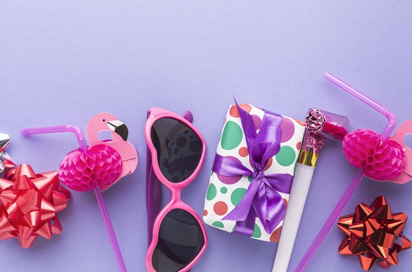 - Óculos e acessórios divertidos: óculos temáticos, colares, pulseiras e itens neon
