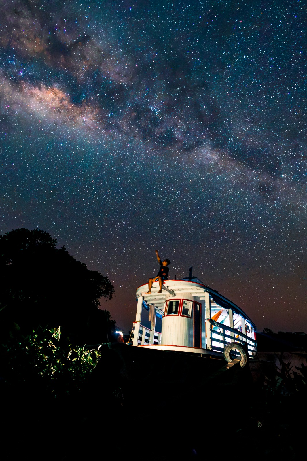 “Para mim, essa imagem mostra um menino sonhador. Mas também mostra o universo de fato – as galáxias, as estrelas – e, ao mesmo tempo, o rio, a floresta, o ribeirinho, o modo de viver dessas comunidades. É o universo literal e o universo amazônico juntos”, afirma Nagano. “Hoje, com a poluição luminosa, quase não se vê mais um céu assim. Na floresta, a noite ainda é escura, e só lá conseguimos enxergar esse universo a olho nu. Isso é raro, é um tesouro, é algo sagrado.”