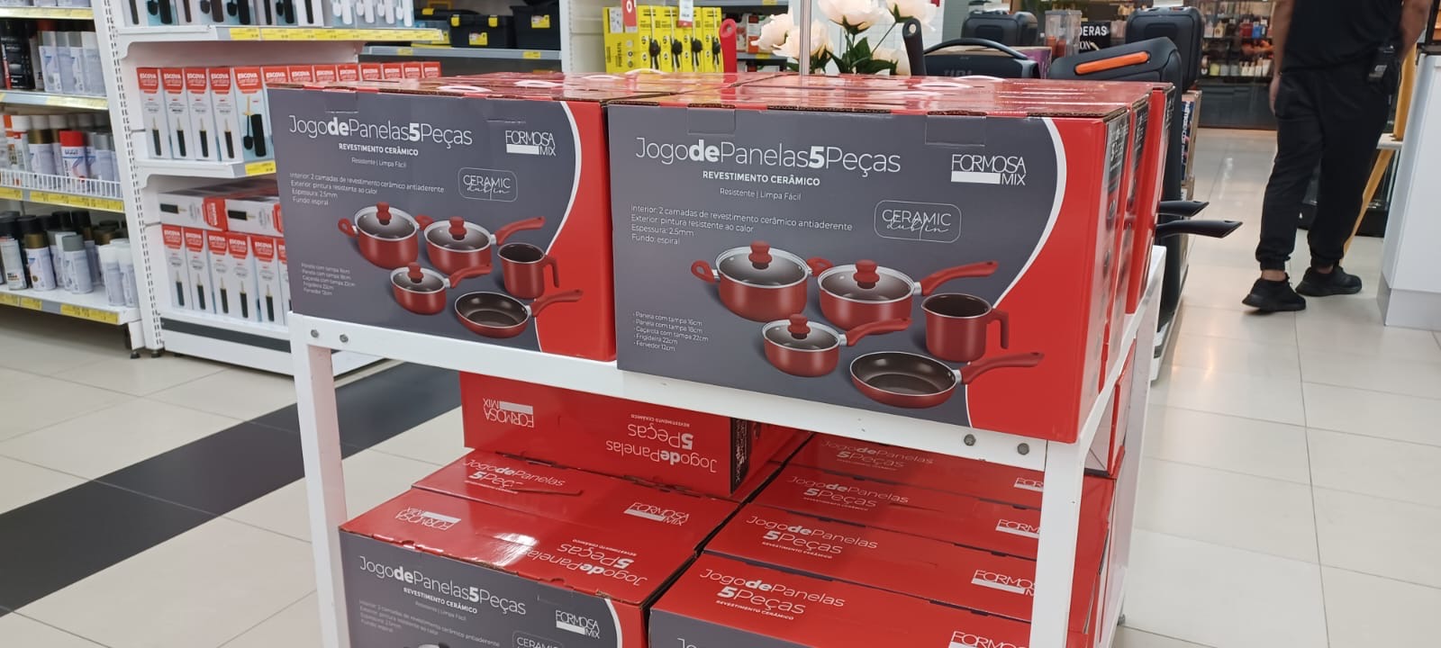 São jogos de panelas, garrafas térmicas, mops, gazebos, lixeiras, sapateiras e muito mais que levam a marca Formosa Mix em suas embalagens, emprestando para os produtos a confiabilidade e valor da marca tão conhecida já.