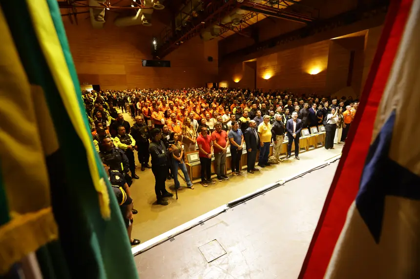 A cerimônia institucional iniciou com a execução dos hinos e pronunciamentos das autoridades. Abrindo a programação, a vice-governadora do Pará ressaltou a importância do evento para a segurança pública no Estado, abordou os desafios do setor e as diretrizes do Governo do Estado.