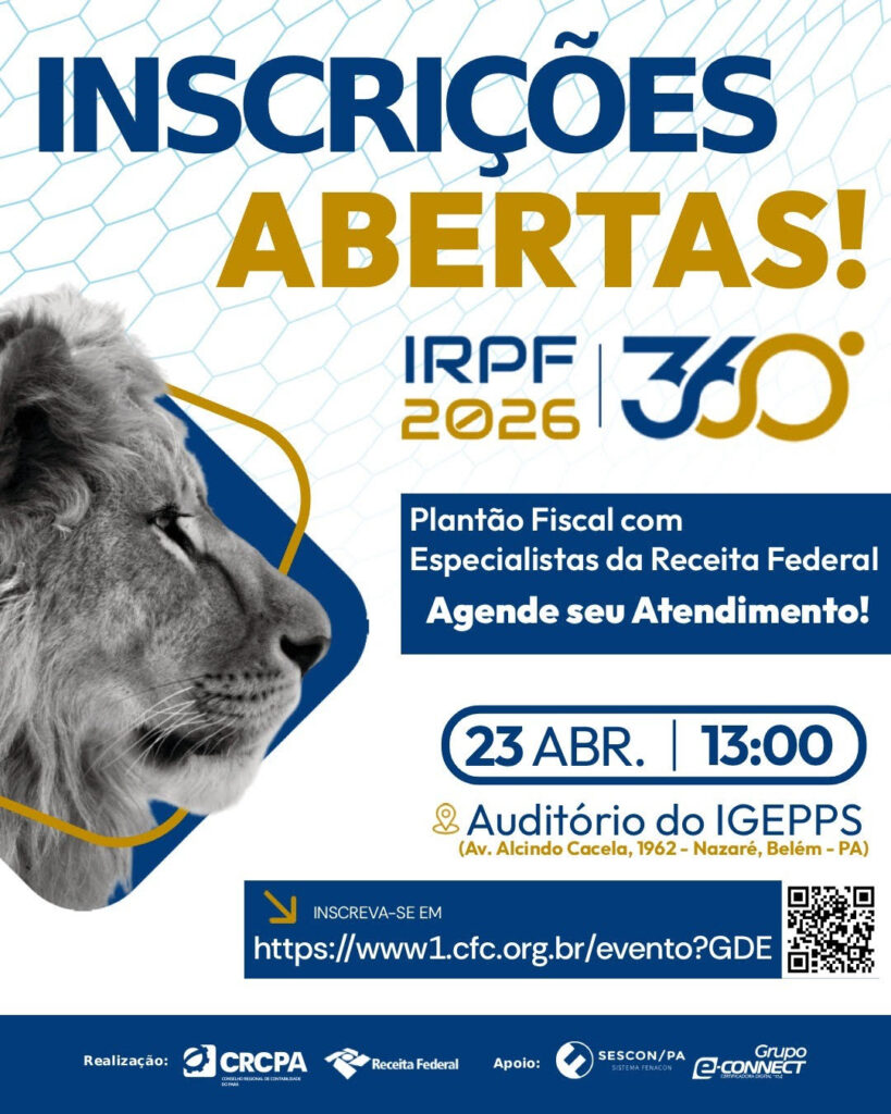 O encontro será realizado no próximo dia 23 de abril, a partir das 13h, no Auditório do Instituto de Gestão Previdenciária e Proteção Social do Estado do Pará (IGEPPS), reunindo especialistas e representantes da área fiscal para um panorama completo das obrigações e novidades do IRPF 2026.