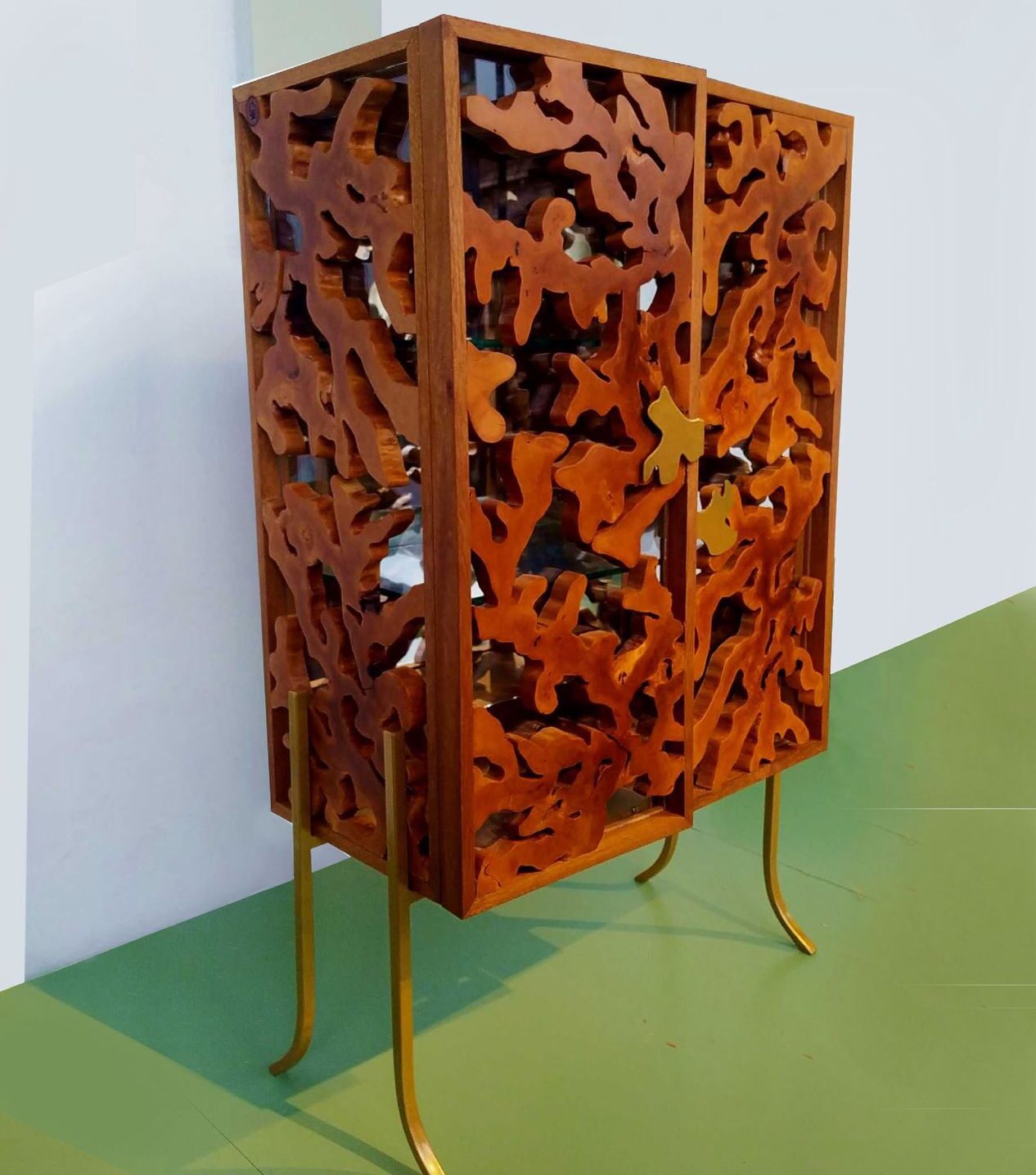 Cristaleira assinada por Érico Gondim e Pacajá Móveis está entre os destaques da 36ª edição do prêmio, em cartaz no Museu da Casa Brasileira, em São Paulo